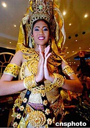 15日晚的泰國布吉島一旅游點上,一首飾點的模特兒在向顧客祝福。海嘯地震過后,這里旅游業正在逐步復蘇。作者:宋吉河