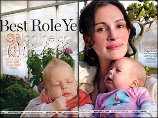 懷孕期間,朱莉亞·羅伯茨仍在堅(jiān)持拍戲。2004年底,有她參演的兩部電影同時在影院上映,分別是《十二羅漢》和《偷心》。