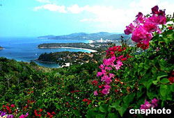 2月中旬的泰國(guó)布吉島三海風(fēng)光旅游區(qū),風(fēng)和日歷,絢麗的山花映襯著碧藍(lán)的大海,展現(xiàn)出一幅美麗畫卷。