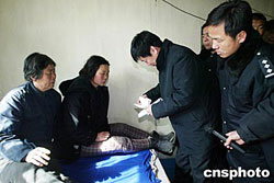 二月十九日,遼寧阜新礦業集團海州立井礦難事故遇難者遺體開始火化,在礦難中遇難的掘進隊工人張鳳江的家屬在今天領到了一次性補償金二十萬元。圖為遇難者家屬接到送來的存折。作者:盛佳鵬