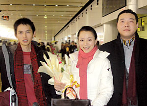 昨天(21日)下午3點左右,《孔雀》的主創兩位主演張靜初、馮鑠和編劇李檣經過十多小時的疲勞戰,終于從柏林回到北京。三人拿著大包小包行李剛出機場,就被守候的記者圍住,受到這樣的意外禮遇,張靜初十分開心,“拿獎當然很開心,希望國內的觀眾都能去看看它”。