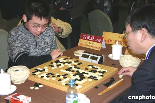 今天上午,在簡(jiǎn)短的開幕式后,比賽正式拉開帷幕。結(jié)果,聶衛(wèi)平最小的徒弟“小胖”古靈益執(zhí)黑在與師傅的對(duì)決中最先告捷,由于盤面不足,聶衛(wèi)平以超時(shí)告負(fù),再次印證了古靈益作為“九段高手克星”的名號(hào)。朱元豪二段爆冷將邵偉剛九段挑下馬,首屆“西南王”楊一五段以一又四分之一子戰(zhàn)勝第二屆“西南王”古力七段,俞斌、王磊、王堯、周鶴洋、王煜輝分別戰(zhàn)勝對(duì)手晉級(jí)八強(qiáng)。