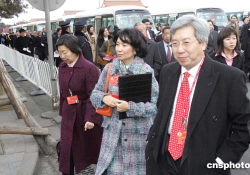 全國政協(xié)十屆三次會(huì)議三月三日下午在北京人民大會(huì)堂開幕,出席會(huì)議的方黃吉雯、李家祥等香港委員步入會(huì)場(chǎng)。作者:毛建軍