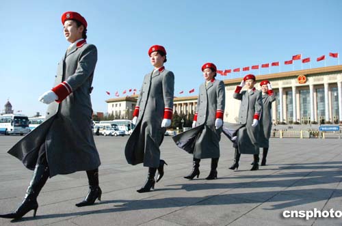圖:北京會(huì)議中心禮儀小姐亮相天安門廣場