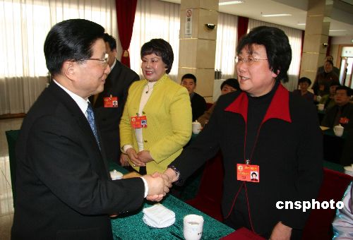 中新社北京三月四日電 中共中央政治局常委吳邦國、溫家寶、曾慶紅、黃菊、吳官正、李長春、羅干四日下午分別看望出席全國政協(xié)十屆三次會(huì)議的委員,并參加了分組討論,與政協(xié)委員共商國是。