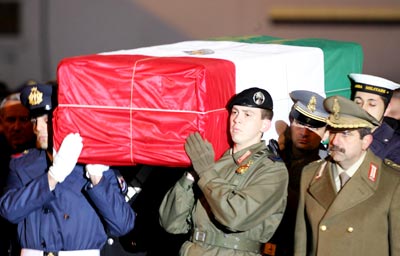 據意大利通訊社報道,卡利帕里的尸體已被一架屬于意大利空軍的C-130飛機運回祖國。