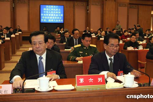 會(huì)議表決通過,將關(guān)于接受江澤民辭去中華人民共和國(guó)中央軍事委員會(huì)主席職務(wù)的請(qǐng)求的決定草案,提請(qǐng)大會(huì)表決。