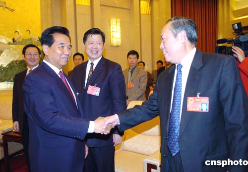 圖:吳官正與黑龍江代表審議政府工作報告