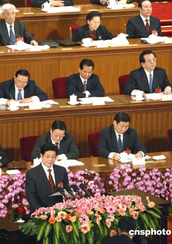 圖:王兆國作關于《反分裂國家法(草案)》的說明