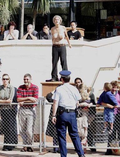 查爾斯王子在人群中間走來(lái)走去的時(shí)候,一名當(dāng)?shù)貗D女突然脫下上衣,露出胸部所寫(xiě)的一行字:“把殖民地的恥辱從我乳房上移走”。先前不久,即查爾斯王子抵達(dá)新西蘭之后不久,就有一名懷抱孩子的婦女當(dāng)眾露胸,表示對(duì)查爾斯的抗議。該婦女很快就被警察帶走,目前已經(jīng)以擾亂社會(huì)秩序罪遭到起訴。