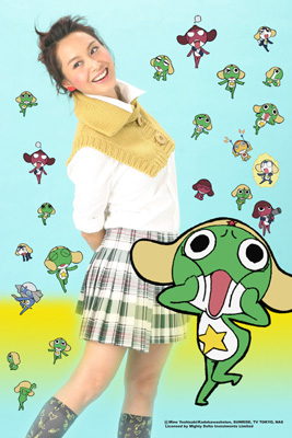 中新網3月9日電 據香港《大公報》報道,朱茵被片商“欽點”演繹《Keroro軍曹》中文版主題曲,感到興奮莫名,更直言與“Keroro軍曹”十分有緣。她開心的說:“從未試過唱兒歌,也想不到會得到別人的賞識。我覺得與Keroro軍曹很有緣,因為去年我到日本工作時,在商店及電視看到這只青蛙,第一個反應就覺得它樣子可愛得來帶點兒『賤』,立即留下深刻印象。想不到這次可以為它的卡通演繹主題曲,確實十分開心。”故一經邀請,即決定獻出這個第一次。