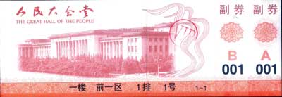 陽(yáng)光下就可以看到票面內(nèi)的水印,不過人民幣上是毛主席頭像,這里是“人民大會(huì)堂”等字樣;新票上還有同人民幣差不多的金絲線。此外新票也有熒光顯示,在驗(yàn)鈔機(jī)下,“人民大會(huì)堂”幾個(gè)字會(huì)發(fā)出藍(lán)光,和鈔票上的“中國(guó)人民銀行”效果一樣。據(jù)悉新票還有其他防偽措施,但為保密起見,人民大會(huì)堂工作人員拒絕向外透露。不過據(jù)演出方介紹,入場(chǎng)時(shí)你會(huì)發(fā)現(xiàn)所有的入口都有一臺(tái)驗(yàn)鈔機(jī),驗(yàn)鈔機(jī)擔(dān)任起了驗(yàn)票的功能,所有人必須由這臺(tái)驗(yàn)鈔機(jī)驗(yàn)票才能進(jìn)場(chǎng)。