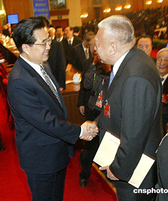 圖:胡錦濤祝賀董建華被增選為全國政協(xié)副主席