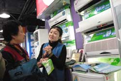 三月十四日,顧客在鄭州的家電市場選購空調。有消息說,亞洲鐵礦石四月起將漲價百分之七十一點五,會對汽車、機械制造、房地產、造船、輕工、家電等行業產生影響,特別是對市場競爭激烈的空調產品影響較大。很多消費者認為白色家電漲價只是時間問題,因而促使部分有潛在購買需求的消費者提前釋放購買力。作者:慎重
