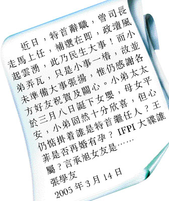 學(xué)友在聲明上先說(shuō)出大家關(guān)心的社會(huì)大事,然后才承認(rèn)女兒于三八婦女節(jié)出世,母女平安,最搞笑是他說(shuō):“小弟弄瓦,只是小事一椿……小弟固然十分欣喜,但心仍惦掛誰(shuí)是特首繼任人?王菲是否再婚有孕?IFPI大碟誰(shuí)屬?言承旭女友是……”平日說(shuō)話沉實(shí)的學(xué)友,突然來(lái)個(gè)大幽默,令人大為意外,而他終于如愿再添丁,大家也為他高興。