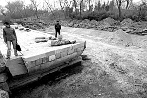 中新網3月17日電 京華時報報道,昨天,有北京市民在圓明園石舫遺址發現十余件石舫殘件,懷疑是被八國聯軍破壞的石舫原件。