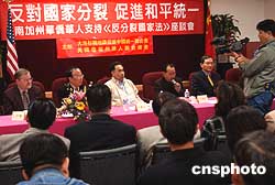美國洛杉磯華人政治評論家與當地僑胞僑領,三月十九日云集中國城參加座談會,異口同聲支持中國通過實施《反分裂國家法》。作者:賈國榮