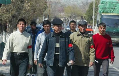 中新網3月23日電 據美聯社報道,吉爾吉斯斯坦反對派代表3月22日在吉爾吉斯斯坦第二大城市奧什市的一條街道中巡邏。
