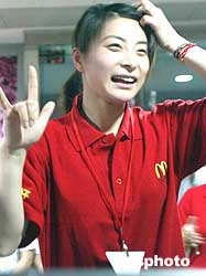麥當(dāng)勞中國有限公司三月二十三日在北京舉行“均衡生活方式”宣傳活動(dòng),麥當(dāng)勞形象代言人、奧運(yùn)冠軍郭晶晶參加活動(dòng)。作者:錢興強(qiáng)