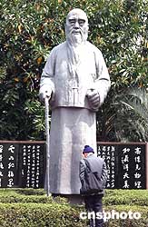 清明前,臺北“國父紀念館”中山公園翠湖湖畔的于右任銅像,雖地處僻靜之處,仍吸引不少市民觀瞻。這位辛亥革命參加者、國民黨元老,曾在去世前寫下傳遍海內外的名作《望大陸》,表達思鄉之情。陳水扁擔任臺北市長時,城建重新規劃,于右任銅像于一九九八年從熱鬧的仁愛路圓環搬至現址。作者:董會峰