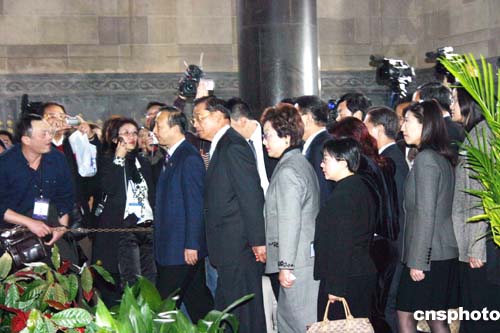 三月三十日上午九點(diǎn),國(guó)民黨參訪團(tuán)拜謁中山陵的祭拜儀式正式開(kāi)始。江丙坤代表中國(guó)國(guó)民黨主席連戰(zhàn)及全體國(guó)民黨黨員向中山陵敬獻(xiàn)花籃。參訪團(tuán)所有成員均向?qū)O中山遺像三鞠躬并默哀一分種。圖為參訪團(tuán)所有成員在孫中山陵寢旁繞場(chǎng)一周,瞻仰孫中山遺像。作者:陳旻
