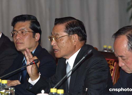三月三十日,中共中央臺辦主任陳云林在北京與中國國民黨副主席江丙坤舉行會談。作者:廖文靜
