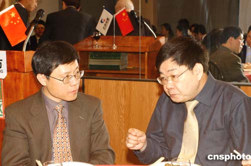 清華同方董事長榮泳霖與美中關(guān)系全國委員會(huì)會(huì)長何立強(qiáng)交流。作者:龔文漠