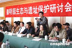 北京圓明園鋪設防滲膜工程完工后,在2000多畝的湖底防滲膜已基本鋪完的既成事實面前,北京民間協會團體--自然之友,四月一日在北京友誼賓館,邀請熱心市民、環保專家學者和圓明園工程負責人,召開“關注圓明園之水——圓明園生態與遺址保護研討會”。關注圓明園保護的新聞媒體數十名記者參加了會議。會議就“作為皇家園林,圓明園的水究竟該怎么保護?”等議題展開討論。作者:鄒憲