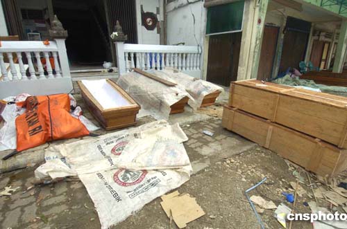 在印度尼西亞尼亞斯島災區,死尸挖掘出來后放在路旁,沒有及時運走,散發惡臭,影響環境衛生。作者:鄧慶樂