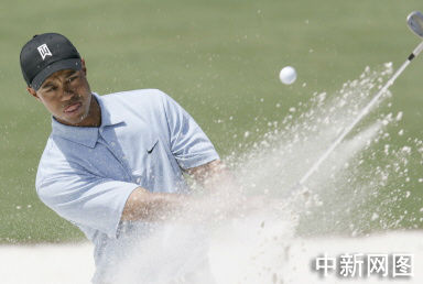 4月4日,在2005年高爾夫名人賽預選賽上,美國選手泰格-伍茲揮桿擊球。此次名人賽在喬治亞的奧古斯塔國家高爾夫球俱樂部舉行,第一輪比賽將于4月7日開始。