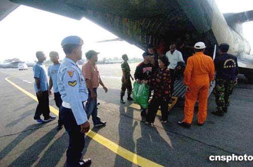 圖:印度尼西亞空軍用運輸機送災民離開