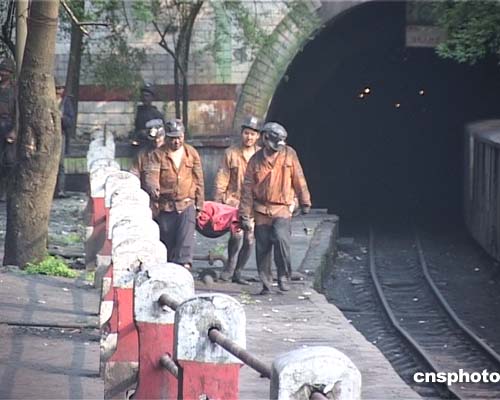 四月五日下午二時(shí)十五分,位于重慶市合川境內(nèi)的天府礦業(yè)公司三匯一礦發(fā)生煤與瓦斯突出特大事故,目前有一人遇難,二十二人生死不明。圖為遇難礦工尸體被抬出井口。作者:郭晉嘉
