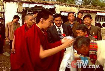 班禪:本來我平常就為眾生的苦難祈禱,我遇到這種情況還是祈禱,同時也捐款。