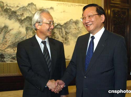 在談到中國政府的對日政策時,唐家璇說,胡錦濤主席和溫家寶總理去年與小泉首相會晤時強調,我們希望中日兩國和平共處,世代友好,互利合作,共同發展。基于這樣的方針政策,中方希望日本保持繁榮和發展,理解日本要在國際社會進一步發揮重要的積極作用的愿望。溫家寶總理不久前在人大記者招待會上提出改善和發展中日關系的“三個原則”和“三點建議”,向日方發出了一個明確信息,即在“以史為鑒、面向未來”的基礎上,與日本加強合作,謀求共同發展。