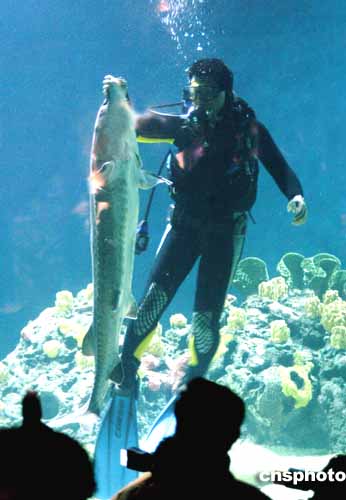 四月二十二日,二十六尾中華鱘魚首次在北京海洋館與游人見面,其中一尾中華鱘全長三點二米,雌性,是目前人類發現的最大野生中華鱘中之一,另外二十五尾來自中國水產科學研究院長江水產研究所。作者:張宇