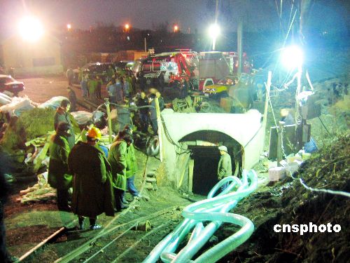 目前,事故現場成立了吉林省、吉林市、蛟河市三級搶險指揮部,搶救工作正分兩方面同時進行,一是堵塞吉安煤礦透水點,同時組織騰達煤礦緊急抽水,營救被困礦工。