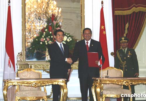圖:胡錦濤訪印尼 兩國建立戰(zhàn)略伙伴關(guān)系