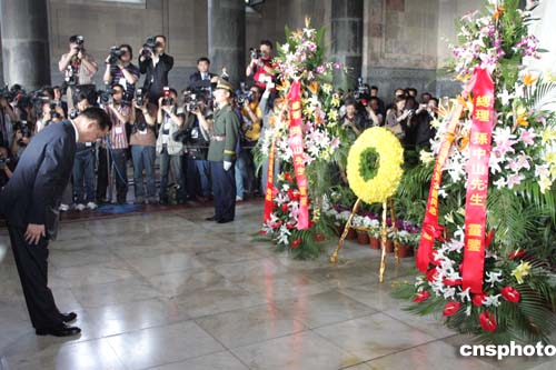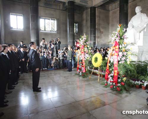 連戰(zhàn)一行八點(diǎn)五十分左右到達(dá)中山陵,為迎接連戰(zhàn)主席的到來,中山陵特為他開啟了中間的大門。從博愛坊開始,走過石階三百九十二級(jí),來到中山陵祭堂。