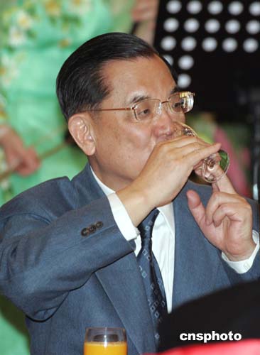 以中國國民黨主席連戰為首的中國國民黨大陸訪問團四月二十七日晚在南京夫子廟狀元酒樓酒店品嘗秦淮風味小吃,觀賞民族音樂表演。作者:毛建軍