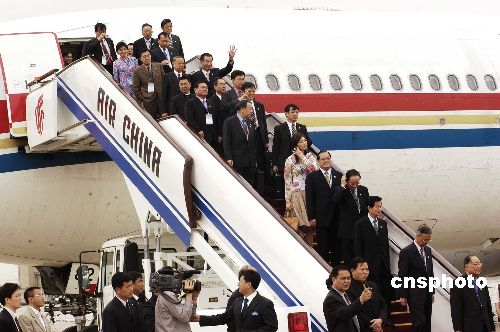 中共中央臺辦主任陳云林、中共北京市委副書記龍新民、在京臺商代表和北京各界代表列隊在停機坪熱烈歡迎連戰(zhàn)一行。