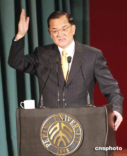中新網4月29日電 中國國民黨主席連戰今天在北京大學演講時說,臺灣走對路才有出路,不能夠讓“制憲”、“正名”、“去中國化”、武斷的“臺獨”時間表來打破我們整個幸福的基礎。
