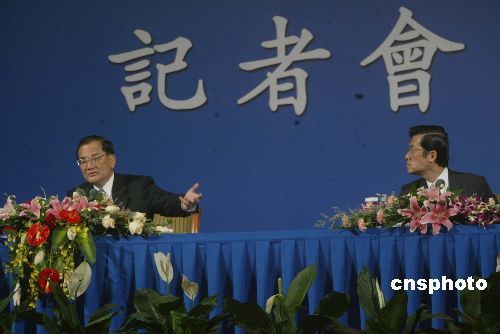 他并宣讀中國國民黨主席連戰與中國共產黨總書記胡錦濤會談新聞公報。