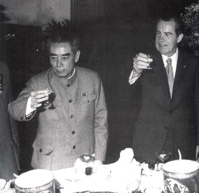 汽車到達體育館,敏感的日本記者發現兩人站在一起愉快地聊著,用照相機攝下了這個鏡頭。第二天,日本三大報《朝日新聞》、《每日新聞》、《讀賣新聞》的頭版顯著位置,圖文并茂地刊載了兩人握手、交談的圖片,有的還加了橫欄標題:中美接近。