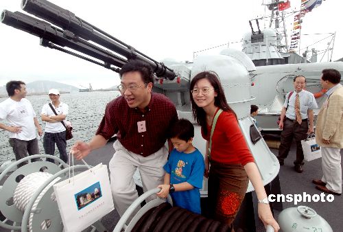 上午十時,部分香港青少年團體及學校師生約四千多人來到昂船洲海軍基地,饒有興趣地參觀艦艇,觀摩水兵文化生活,并進行聯歡。