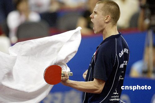 中新社上海五月五日電 (記者 王歡)繼昨天爆冷戰(zhàn)勝了奧運會男單亞軍、中國選手王皓之后,已經(jīng)打瘋了的丹麥人梅茲一發(fā)不可收拾,在今天與中國小將郝帥的世乒賽男子單打四分之一決賽中,零比三落后的他以打不死的韌勁和退臺放高球的打法,連扳四局反敗為勝。