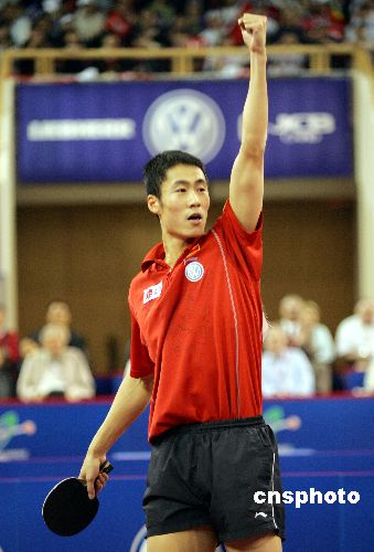 中新社上海五月六日電 (記者 王歡)世界排名第一的中國選手王勵勤在今天舉行的第四十八屆世界乒乓球錦標(biāo)賽男子單打決賽中,以四比二擊敗隊友馬琳,奪取了這枚“含金量”最足的金牌,這也是中國隊在世乒賽歷史上第十三次奪得男子單打冠軍。