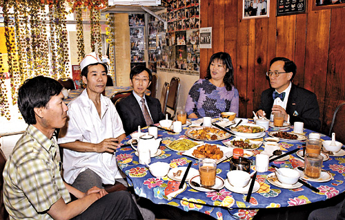 曾蔭權與學員交談后,隨即前往粉嶺聯和墟的一所咖啡室,與正在享受下午茶的市民閑談。曾蔭權說:“我十分享受在這種輕松的氣氛下與‘街坊’閑話家常,對我掌握民生和民情好有幫助。他們的意見對我和特區政府的同事們施政甚具啟發性及有用。”