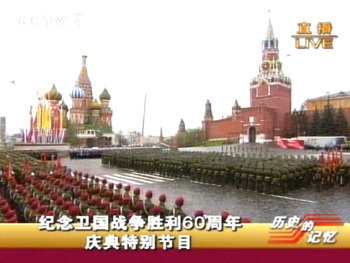 5月9日,俄羅斯在莫斯科紅場舉行紀念衛國戰爭勝利60周年慶典。(央視截圖)