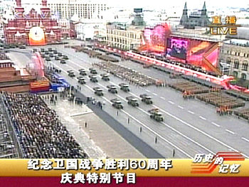5月9日,俄羅斯在莫斯科紅場舉行紀念衛國戰爭勝利60周年慶典。(央視截圖)