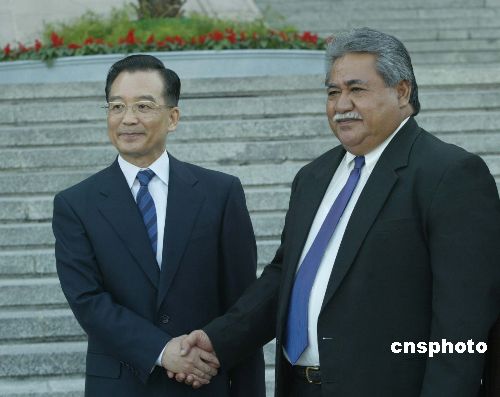 中新網5月9日電 應中國國務院總理溫家寶的邀請,薩摩亞獨立國總理圖伊拉埃帕·薩伊萊萊·馬利埃萊額奧伊于5月8日至15日對中華人民共和國進行正式訪問。今天兩國政府發表聯合聲明,聲明說,薩摩亞政府承認中國的完全市場經濟地位。